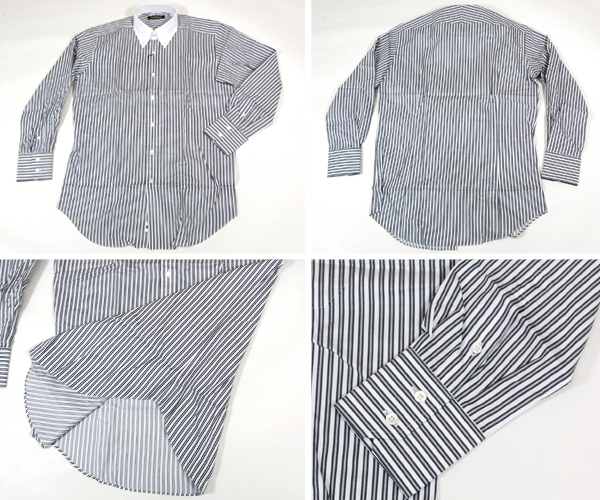 黒グレーストライプクレリックボタンダウンシャツ