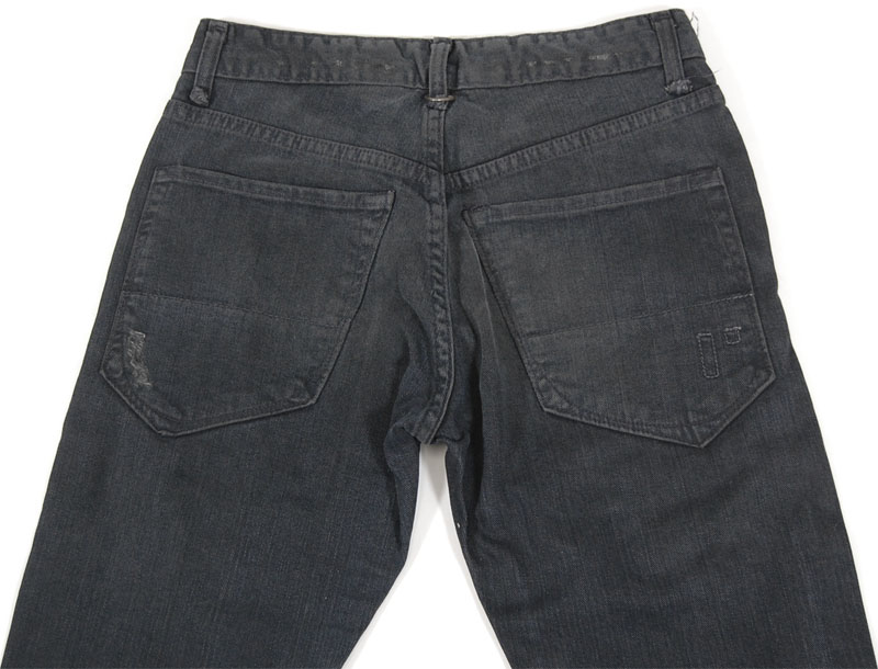 ローガンのクラッシュデニムです。腿にはクラッシュ加工、ポケットやベルトループに三角環をあしらった、デザイン性の高いデニムです。