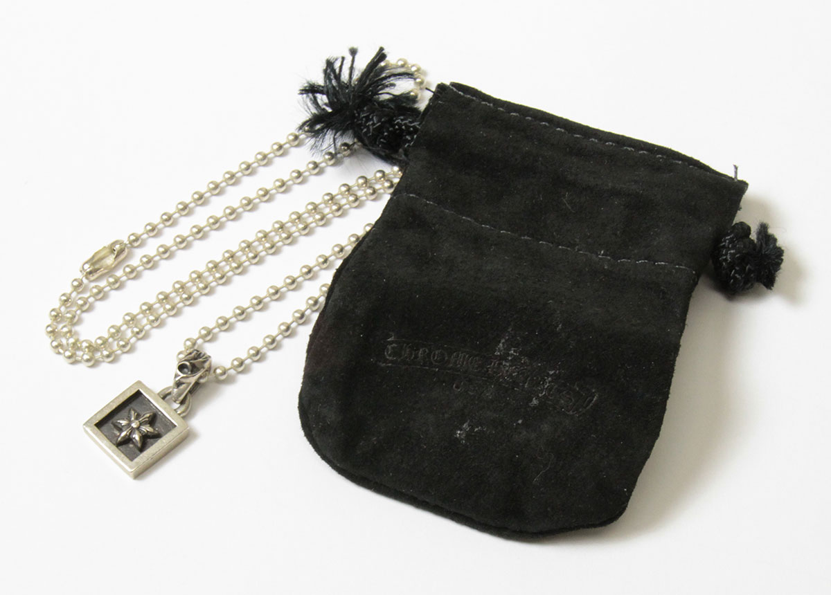 クロムハーツのフレームドスターチャームです。チェーンがついていますので、そのままネックレスとしてお使い頂けます。小振りなサイズで女性におすすめです。証明書等はございませんが、信頼できる方からの委託商品ですので、100%本物であることを保証します。