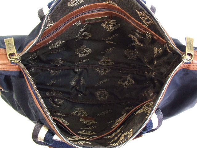 オロビアンコのビジネスバッグです。紺のナイロンとブラウンの組み合わせはコーディネイトもしやすく、ビジネスにもカジュアルにもお使いいただけます。 アンティーク感を出したエンブレムもシックでかっこいいです。 保存袋、ショルダーストラップが付属します。