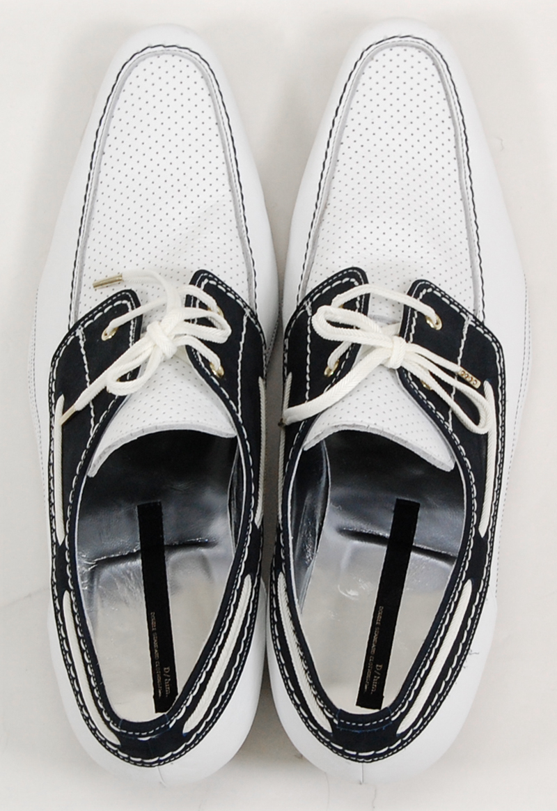 白パンチングレザーデッキシューズ