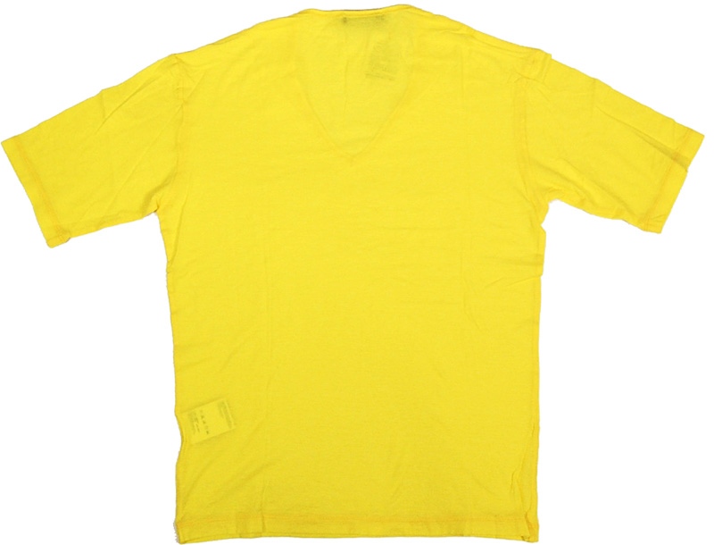 イエローのVネックカットソーです。上質な手触りのよい薄手のコットンを使用。発色のきれいさはさすがです。ネックの開き具合や、着丈のバランスが絶妙なので、シンプルに着て頂いても格好いいです。