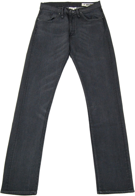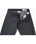 ローガンのブラックデニムです。軽くウォッシュ加工されています。直線的なポケットに丸く入ったステッチが印象的です。形はスリムです。