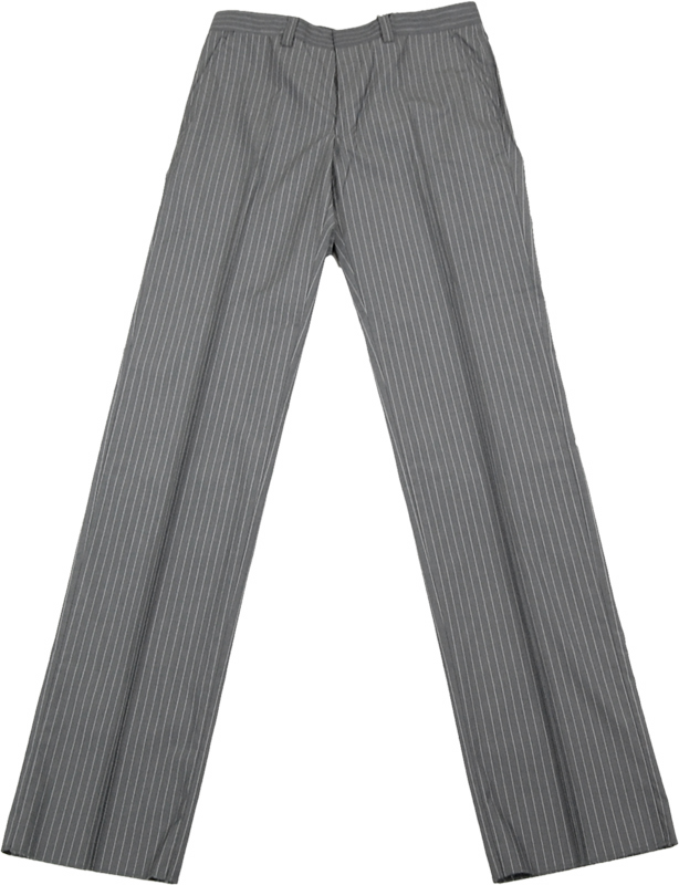 グレーのストライプスラックスです。春夏らしいポリエステルが主素材の気持ちのいいスラックスです。エポカらしいシンプルなデザイン、きれいなシルエットなので、ご愛用いただけると思います。