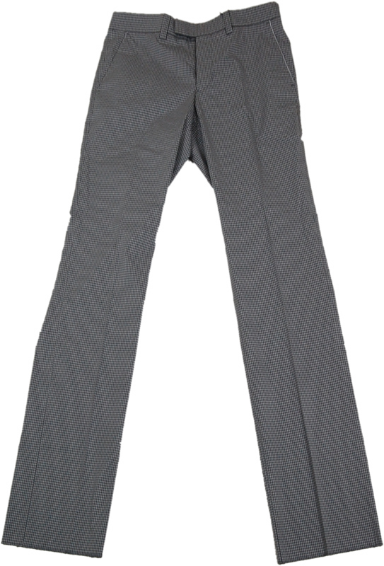 格子柄のパンツです。ポケットのパイピングがシルエットを引き締めています。白のポロシャツと合わせて上品に、黒のシャツと合わせてスタイリッシュに、幅広いコーディネイトが可能なパンツですので、ご愛用頂けると思います。