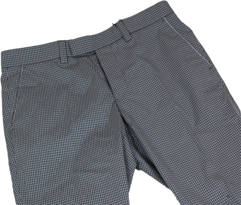 格子柄のパンツです。ポケットのパイピングがシルエットを引き締めています。白のポロシャツと合わせて上品に、黒のシャツと合わせてスタイリッシュに、幅広いコーディネイトが可能なパンツですので、ご愛用頂けると思います。
