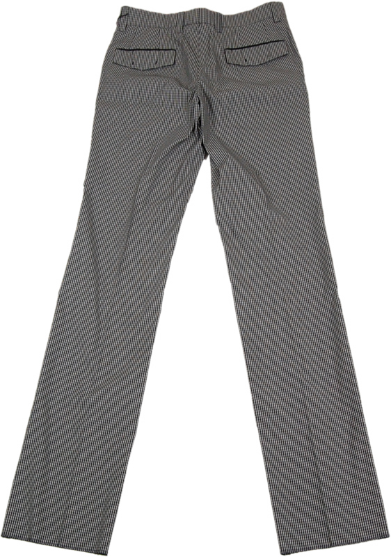 格子柄のパンツです。ポケットのパイピングがシルエットを引き締めています。白のポロシャツと合わせて上品に、黒のシャツと合わせてスタイリッシュに、幅広いコーディネイトが可能なパンツですので、ご愛用頂けると思います。