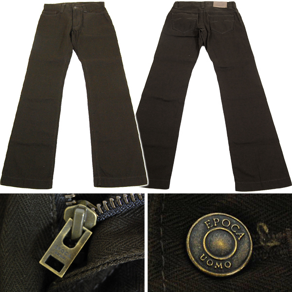 お洒落なカーキ茶のヘリンボーン織りのパンツです。股上が浅めでポケットのステッチなど、エポカのデニムの形で大変使いやすいです。