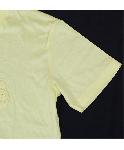 イエローのVネックTシャツです。上質な柔らかい薄手コットンを使用。発色のいいライトイエローは合わせやすく重宝して頂けると思います。胸にワンポイント刺繍ワッペンがついています。
