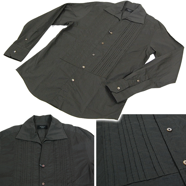 エポカのプリーツシャツです。 胸元にプリーツがあり、お洒落感もありますので一枚持っていると重宝して頂けると思います。