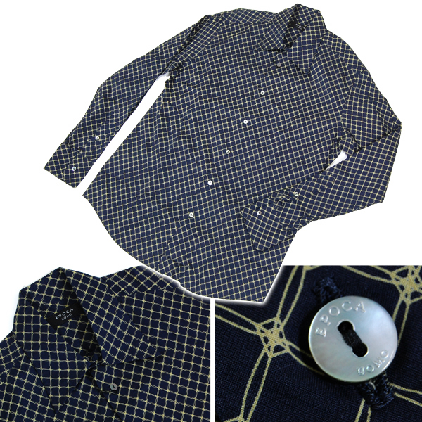 紺にベージュの網柄のシャツです。和の印象もあるエポカらしいきれいなシャツです。