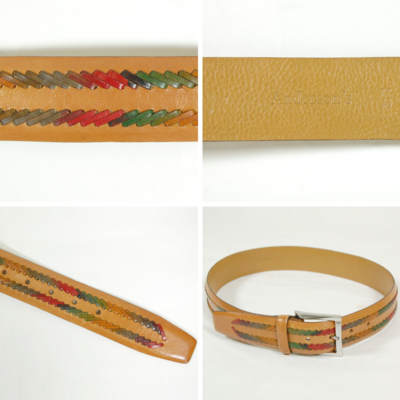 アンダーソンズ(Anderson’s)は革製品で有名なパルマに1966年に前オーナーが創業。 最新の技術と経験、伝統を基に、”高品質”という基準を守り続けている。 徹底的に厳選された革は、ヨーロッパでも優れたなめし皮業者から仕入れている。 クロコダイル、リザード、オーストリッチ、編みこみ(イントレチャート)レザー、コットンなど多くの素材を使用している。 全ての製品は“made in Italy”の名に恥じない製品作りが守られている。 個々の工程は熟練工の手に任されており、仕上げ、ポリッシュを手で行い完成する。 その柔軟さ、能力、顧客サービスにより、アンダーソンズはプロフェッショナルなパートナーとして信頼されている。 ディテールや仕上げにこだわるトップクオリティーを追求するお客様に応えるため、40年以上の年月に蓄積されたノウハウを使い、ニーズにあったモデルを作り出している。 ベルトを手にしたとき、ディテールや仕上げの完璧さからアンダーソンズの仕事にささげる情熱を感じることができる。 品質に対して適正な価格を保持できるのは、外部業者を使わずほとんど内部で生産しているからである。さらに、時間を短縮し、お客様のニーズに細かく応えることが出来る。 新しい技術も導入されている。使用する機械、工具類は個々に使いやすいよう改造され、使われている。