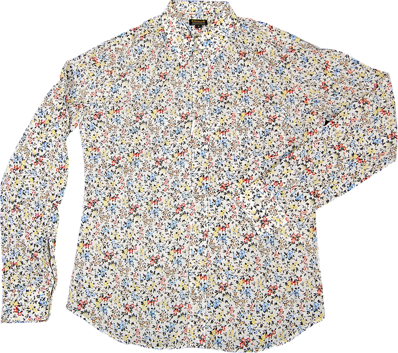 美しいプリントの花柄シャツです。白ベースなので使いやすいです。