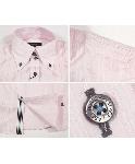 春夏にお洒落なピンクのシャツです。ドゥエボトーニ、ボタンダウンの人気のタイプです。合わせ部分にはノバラインが使われていますので、ボタンを開けてきたときにさりげなくラインが見えます。非常に凝ったストライプ織で、光沢のあるラインが入っていますので、光の加減でストライプが浮かび上がります。