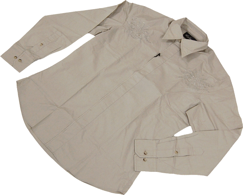 茶刺繍シャツ