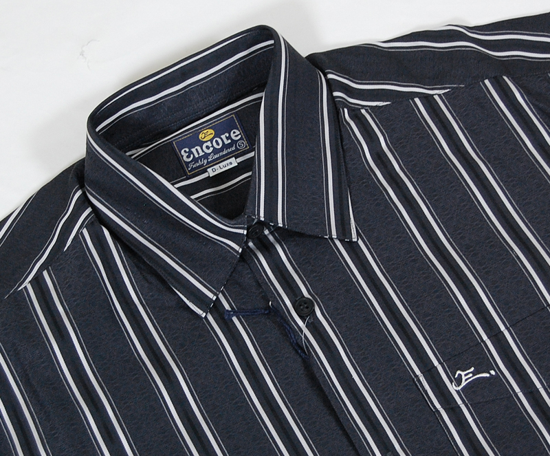 黒の織柄にストライプが入ったシャツです。細かい織柄で高級感があります。スクエアボトムのカジュアルなシャツです。ポルトガル製です。
