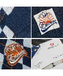 紺のアーガイル柄セーターです。胸にワッペンが付いています。LANEROSSI社製の上質なメリノウールを使用しています。ややムラ感のある染色がカジュアル感を出していて格好いいです。イタリア製です。