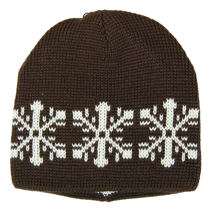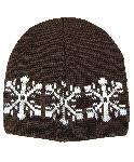 焦げ茶に雪柄のニット帽です。定番デザインですので、長くご愛用頂けると思います。