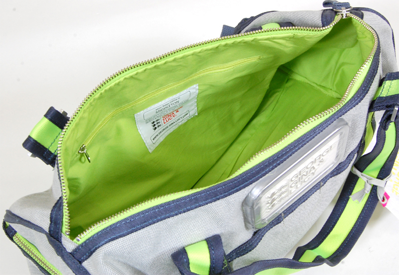 ジョージ ・ジーナ&ルーシーらしいきれいないろのドラムバッグです。両サイドにポケット、外側にポケット、内側にジッパー付きポケットがついています。