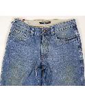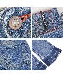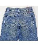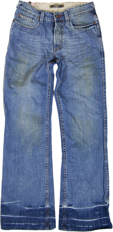 フルサークルのブーツカットデニムです。アンティーク風のボタンや色を変えたステッチ、ヒップポケットの刺繍等、デザイン性の高いデニムです。モロッコ製です。