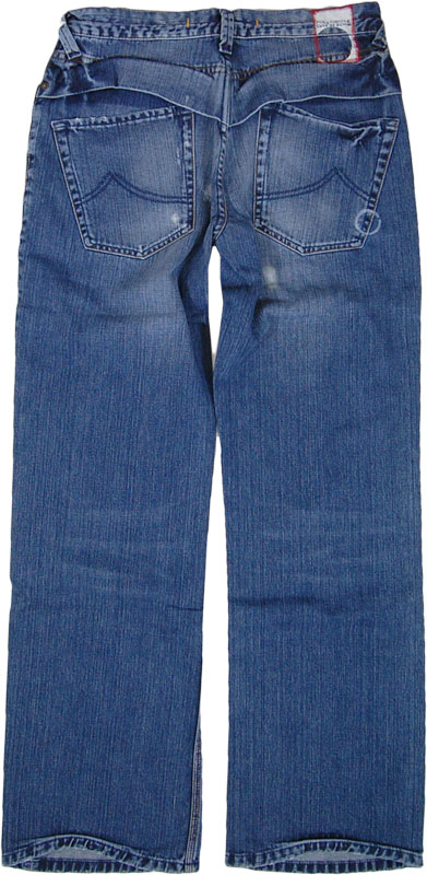 フルサークルのデニムです。アンティーク風のボタンや色を変えたステッチ、ヒップポケットの刺繍等、デザイン性の高いデニムです。モロッコ製です。
