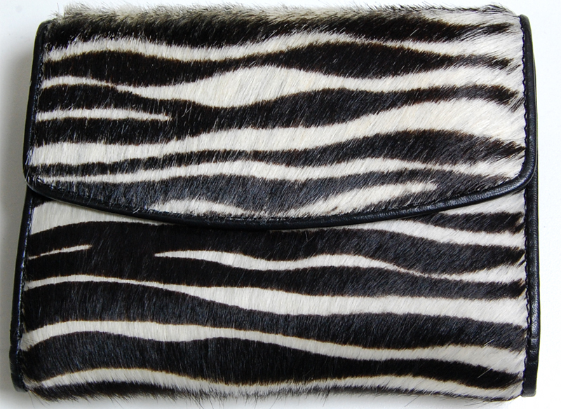 ゼブラ柄ハラコ小銭入れ付き二つ折り財布