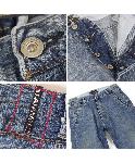 フルサークルの立体裁断デニムです。アンティーク風のボタンや色を変えたステッチ等、デザイン性の高いデニムです。モロッコ製です。
