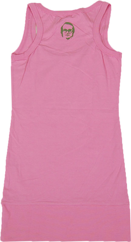 レーヨン混の肌触りのいいタンンクトップです。長めの着丈ですので、きれいなドレープが出ます。首後ろに顔のプリントが入っています。おじさんファン必見です!ポルトガル製です。