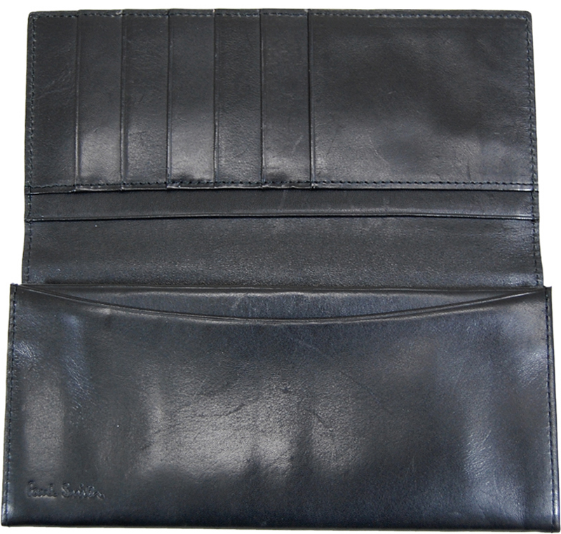 ポールスミスのマルチストライプの長財布です。黒のカーフにロゴが刻印されただけのシンプルな内側に、外側のマルチストライプの対比がポールスミスらしいデザインが人気の財布です。