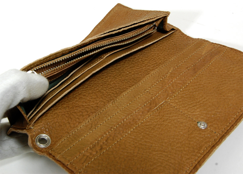 ポールスミスのチェーンウォレットです。ウォッシュドレザーを使用し、ナチュラルでシンプルなデザインの財布です。内側にPaulSmithの刻印があります。