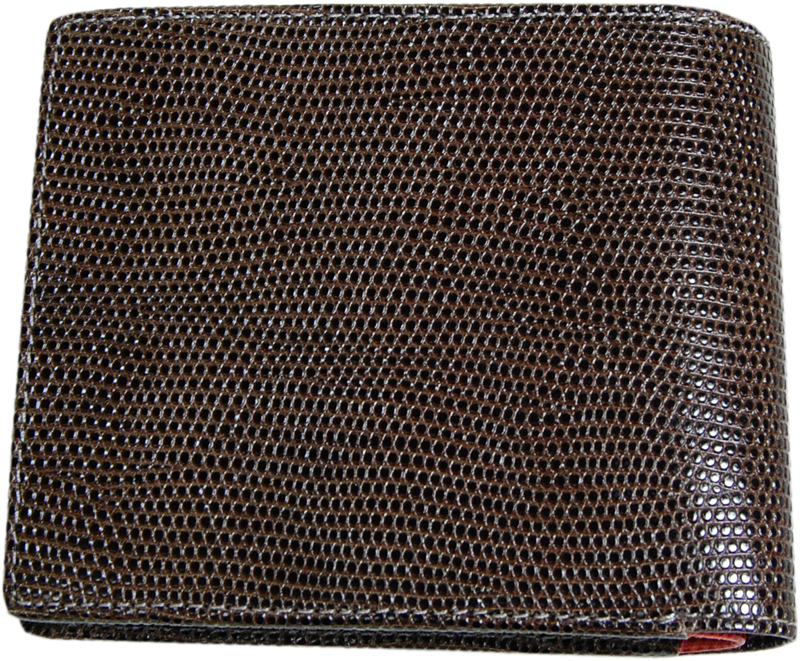 リザード型押し2折財布です。外側はワンポイントメタルのPSがついただけのシンプルなデザイン。内側はマルチカラーのポールスミスらしい配色の財布です。