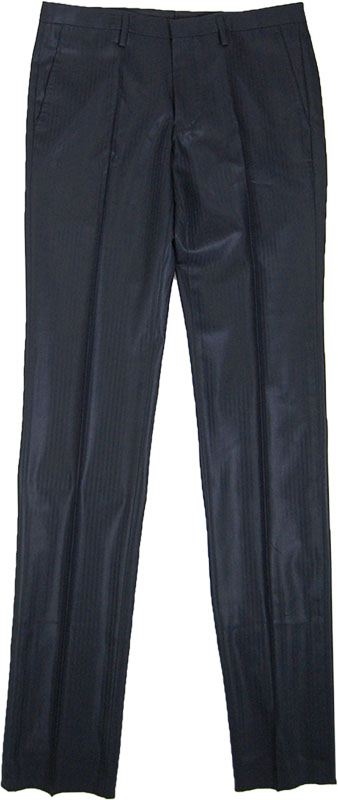光沢感のある濃紺のストライプスラックスです。股浅細身のブラックバレットらしいきれいなシルエットです。