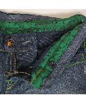 ヒップポケットのロゴステッチや太めのステッチがリハッシュらしいお洒落なデニムです。細くテーパードがかかったきれいなシルエットです。グリーンのステッチが印象的です。イタリア製です。
