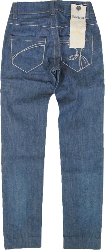 ヒップポケットのロゴや太めのステッチがリハッシュらしいお洒落なデニムです。テーパードのきれいなシルエットです。