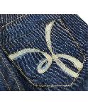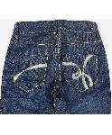 ヒップポケットのロゴや太めのステッチがリハッシュらしいお洒落なデニムです。テーパードのきれいなシルエット。ヒップのロゴは刺繍の後にペイント加工されています。