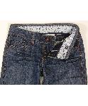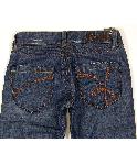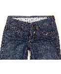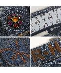 ステッチと、ロゴをあしらった刺繍が入ったヒップポケットのリハッシュ定番のデニムです。刺繍糸に金属のような糸を使っていますので、キラキラしています。RHのラベルはハラコ素材です。石入りのフロントボタンが目を惹きます。イタリア製です。