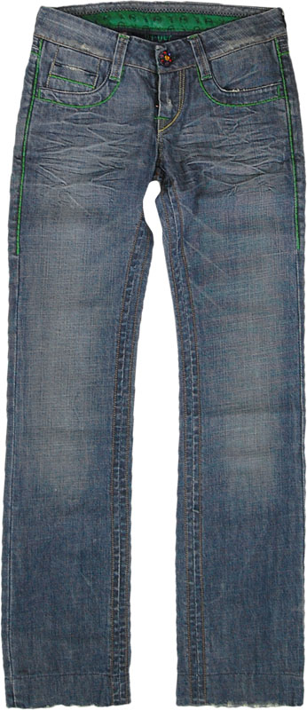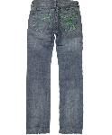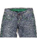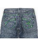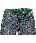 ヒップポケットのロゴや太めのステッチがリハッシュらしいお洒落なデニムです。グリーンのステッチが印象的です。ボタンは石入りで高級感のあるアクセントになっています。
