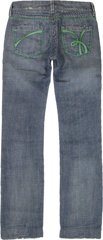 ヒップポケットのロゴや太めのステッチがリハッシュらしいお洒落なデニムです。グリーンのステッチが印象的です。ボタンは石入りで高級感のあるアクセントになっています。