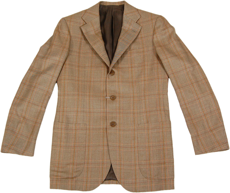 エルメネジルドゼニアの生地を使用した3ボタンジャケットです。カシミヤ100%ですので、質感、保温性も最高です。形は3ボタン、サイドベンツ、袖は未仕立てす。
