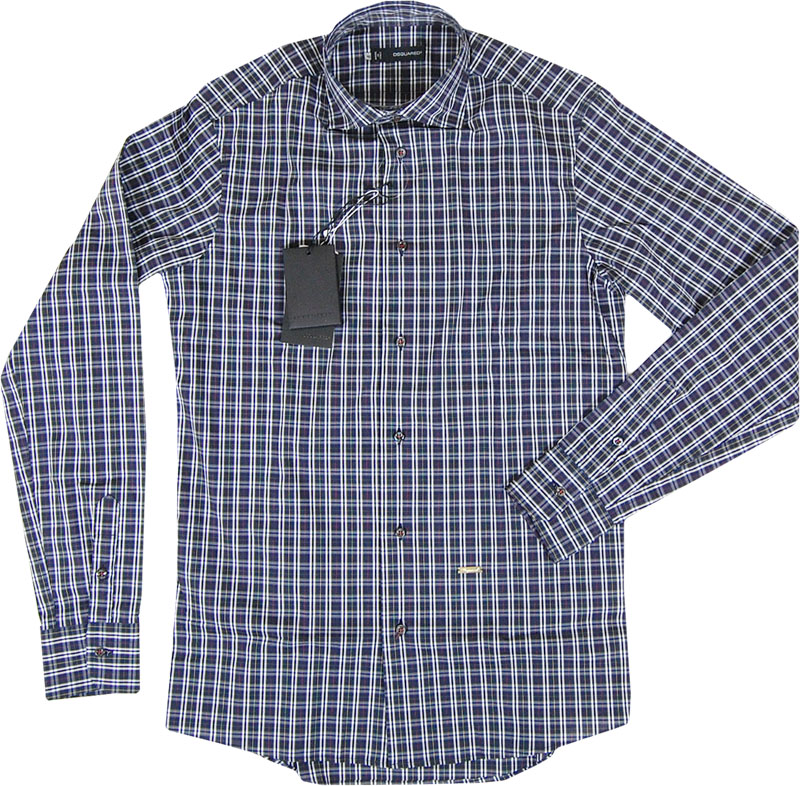 紺チェック柄シャツ