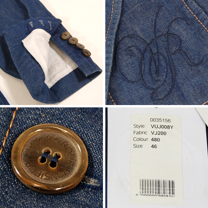 人気の高いVR刺繍入ジャケットです。 2つボタンですが、下のボタンは飾りで、ホールも開いていません。袖も同様の4ボタンです。 ヴィクター&ロルフらしいデザインで、非常に使いやすいジャケットです。