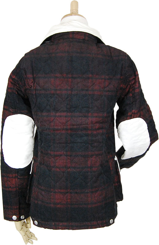 赤チェックコーデュロイキルティングジャケット