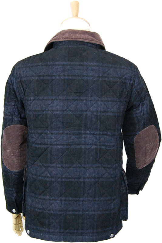 ネイビーチェックコーデュロイキルティングジャケット