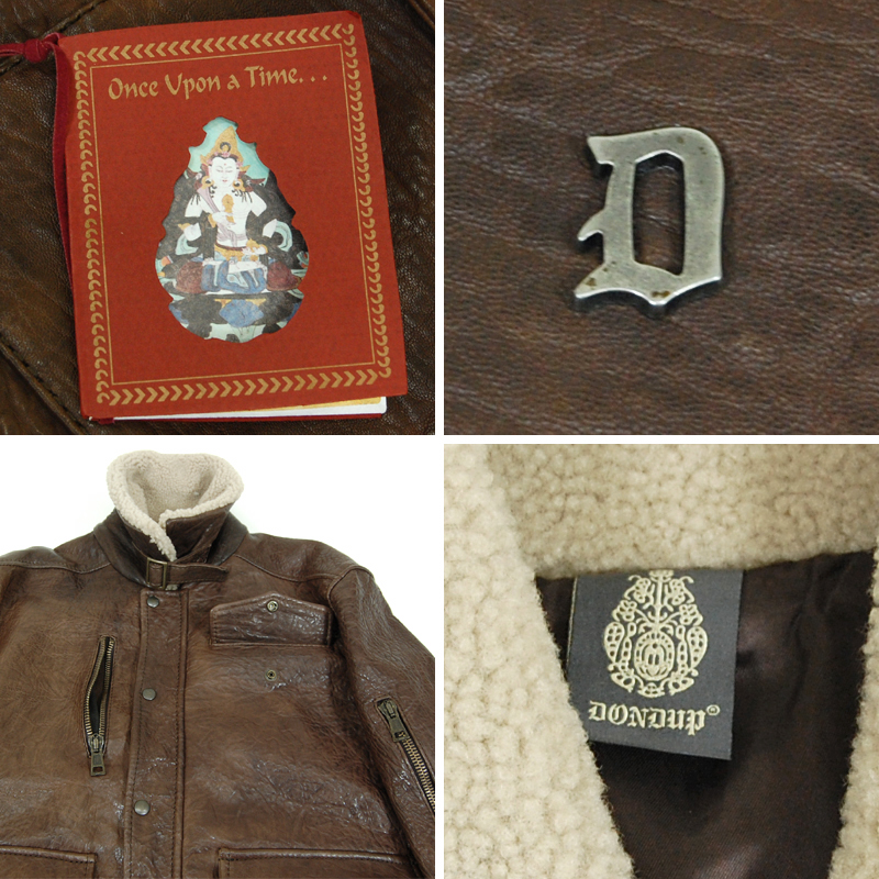 焦げ茶のフライトジャケットです。肉厚のレザーを使用していますので、重量感があります。襟はボアになっており、袖口と裾はリブ、前合わせはボタンホックとジッパーの2重至要になっていますので、暖かいです。飽きがこないデザインですので、一生物として長くご愛用頂けると思います。ややタイトなデザインなので、表記よりも小さめです。