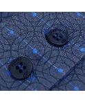 ドットからの同心円と、ストライプを組み合わせた柄のシャツです。シェイプが効いたきれいなシルエットです。