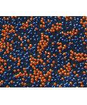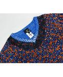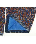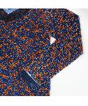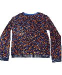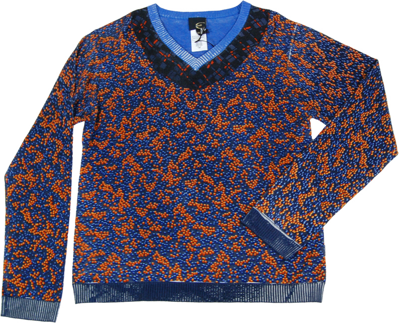 青オレンジ柄付きVネック薄手ニット