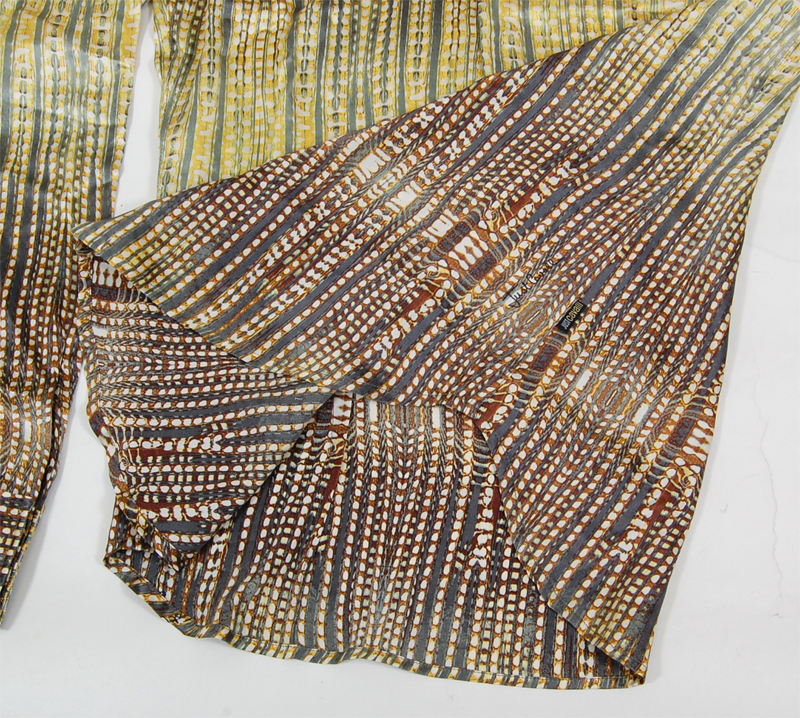 シルクのプリントシャツです。植物の細胞を思わせるような複雑な柄がプリントされています。カヴァッリらしさを強く感じさせます。
