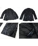 独特の質感の光沢があるジャケットです。形は1ボタン、ノーベント、袖1ボタン(隠しボタン)、ナローラペルとなっています。 デニムとの相性は抜群です。 サンプル品のため、サイズ表記、素材表記がございません。サイズは48相当、素材はポリエステル系と思われます。 ナオタケコシらしい、高級感のある素材にきれいな形です。 大変お勧めのジャケットですので、お見逃しなく!