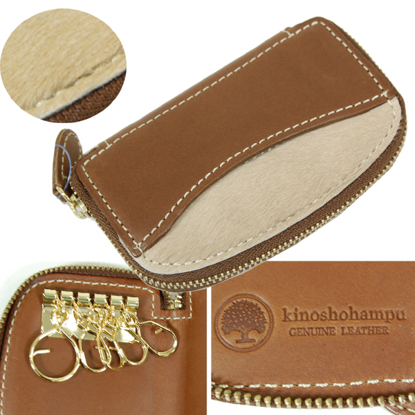 ハラコをアクセントに使った5連ジッパーキーケースです。ハラコと革が切り替わっている部分はポケットになっています。駐車券や切符を入れておけるので便利です。 木の庄帆布らしく上質な革を使い、しっかりとした作りです。 新品ですが、レザー部分に擦り傷がある場合がございます。御了承下さい。