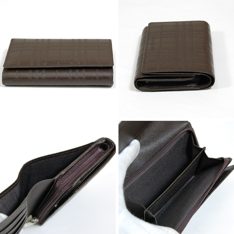 お洒落な型押し二つ折り財布です。 型押しレザーですので、キズが目立たなく、長くご愛用頂けます。 札入れ1部屋、カードポケット10、ポケット3つ、小銭入れ2部屋、 収納力もたっぷりあります。 現在バーバリーの財布を各種出品中です。ぜひご覧ください!